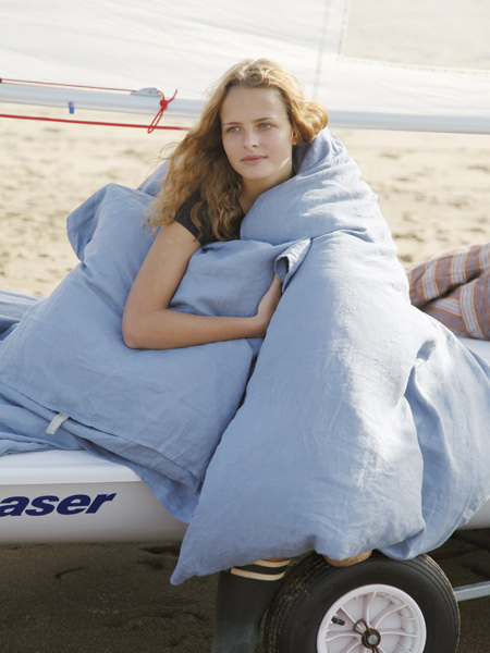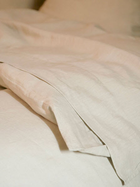 A washed collection! This is the true look of linen. Santiago radiates comfort and luxury, but also a certain informality. Available in duvet covers, shams and cases, flat and fitted sheets. Colors from nature and the pastel pallette bring a cooling and soothing, quite refreshing look. All Santiago colors are roughly washed and naturally dried leaving a slightly winkled yet very soft texture you will find pleasing to the touch for years and years to come.