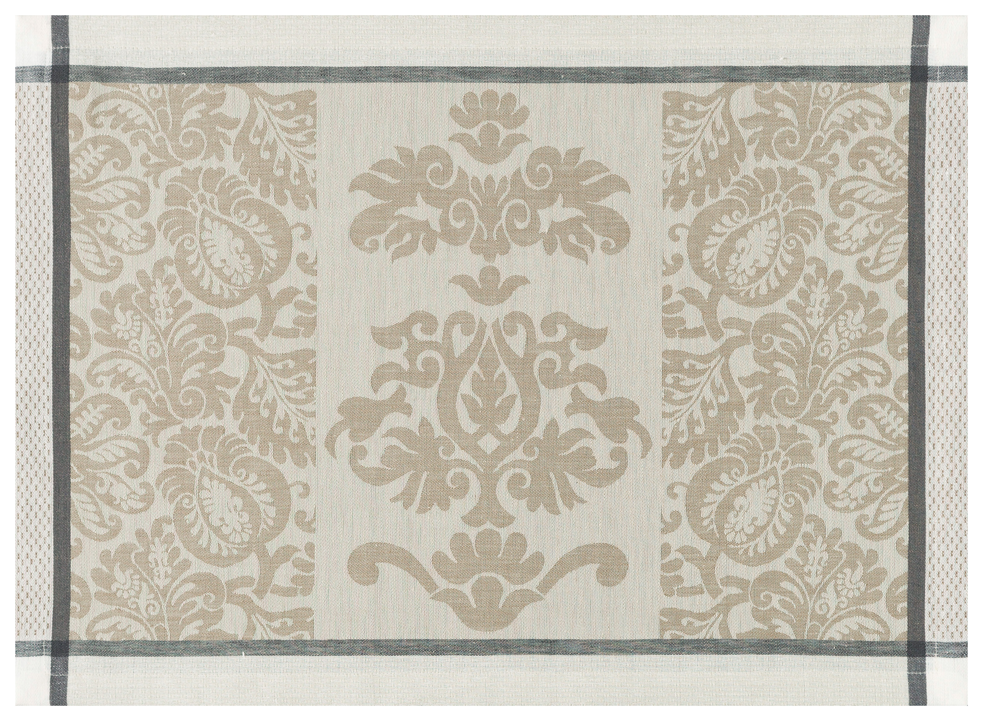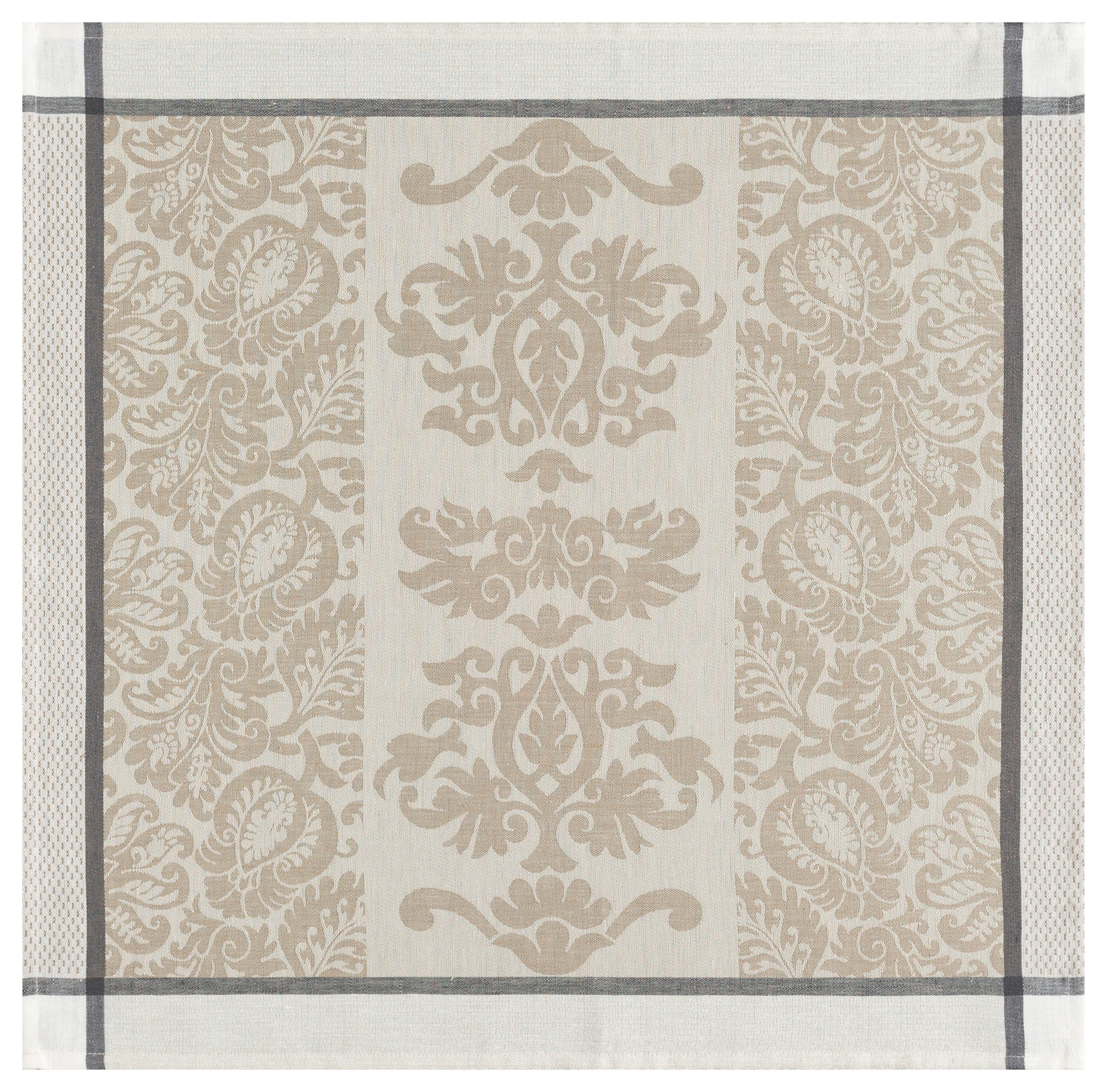 Capturing the spirit of the Renaissance in a swirl of arabesque, stylized organic forms create a rich fresco, enhanced by the nobility of pure linen.